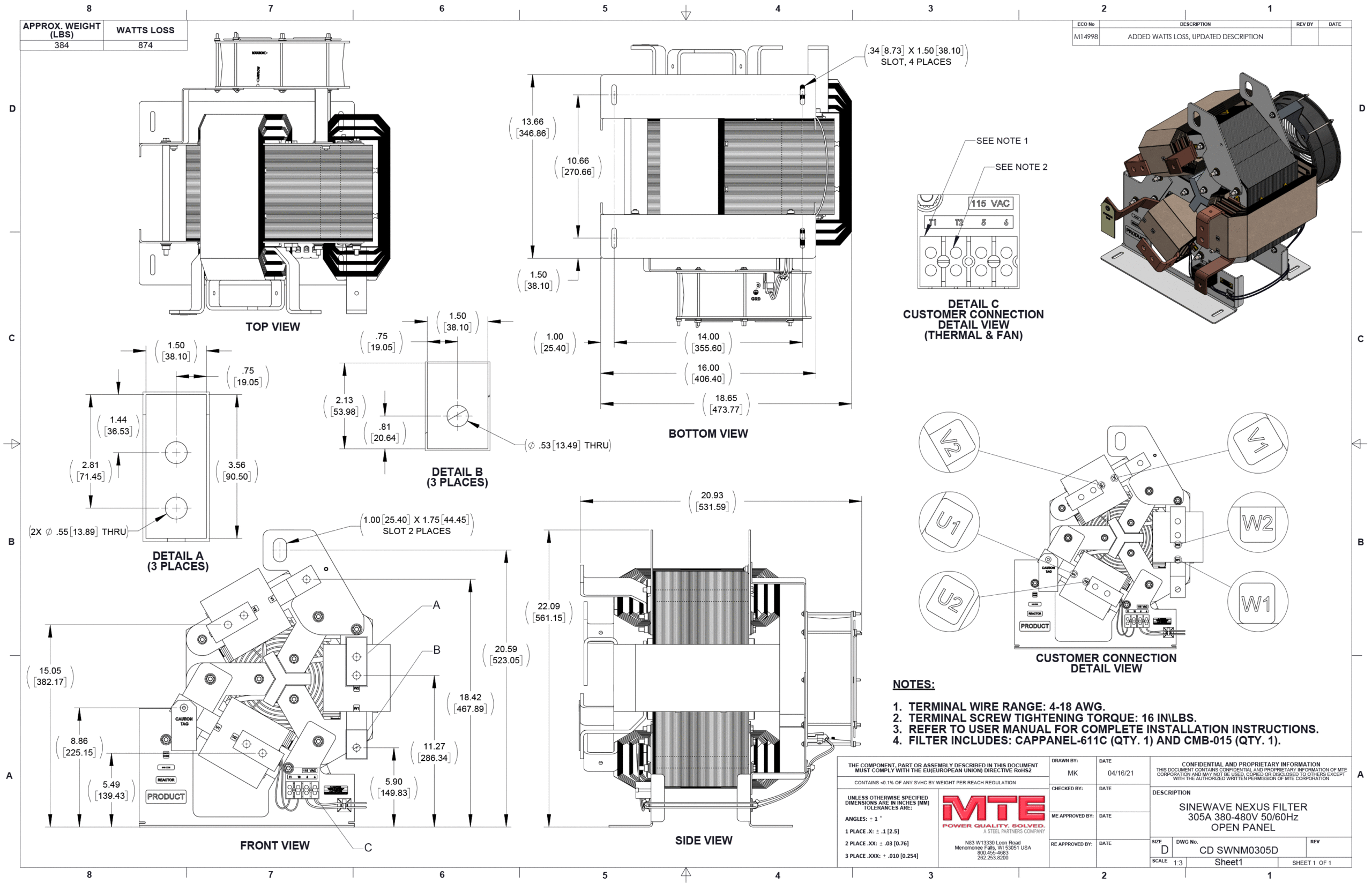 Introducing the latest evolution in motor protection: the MTE SineWave Nexus® Filter. This advanced solution combines the high-performance filtering of a sinewave filter with MTE’s patented common mode protection technology into a single, passive device. The SineWave Nexus does more than just clean the PWM waveforms generated by Variable Frequency Drives (VFDs); it virtually eliminates the common mode voltage that leads to motor bearing failures. By addressing the electrical root cause of pitting, frosting, and fluting, it removes the need for high-maintenance shaft grounding rings or costly isolation transformers. It is the definitive electrical solution for an electrical problem.