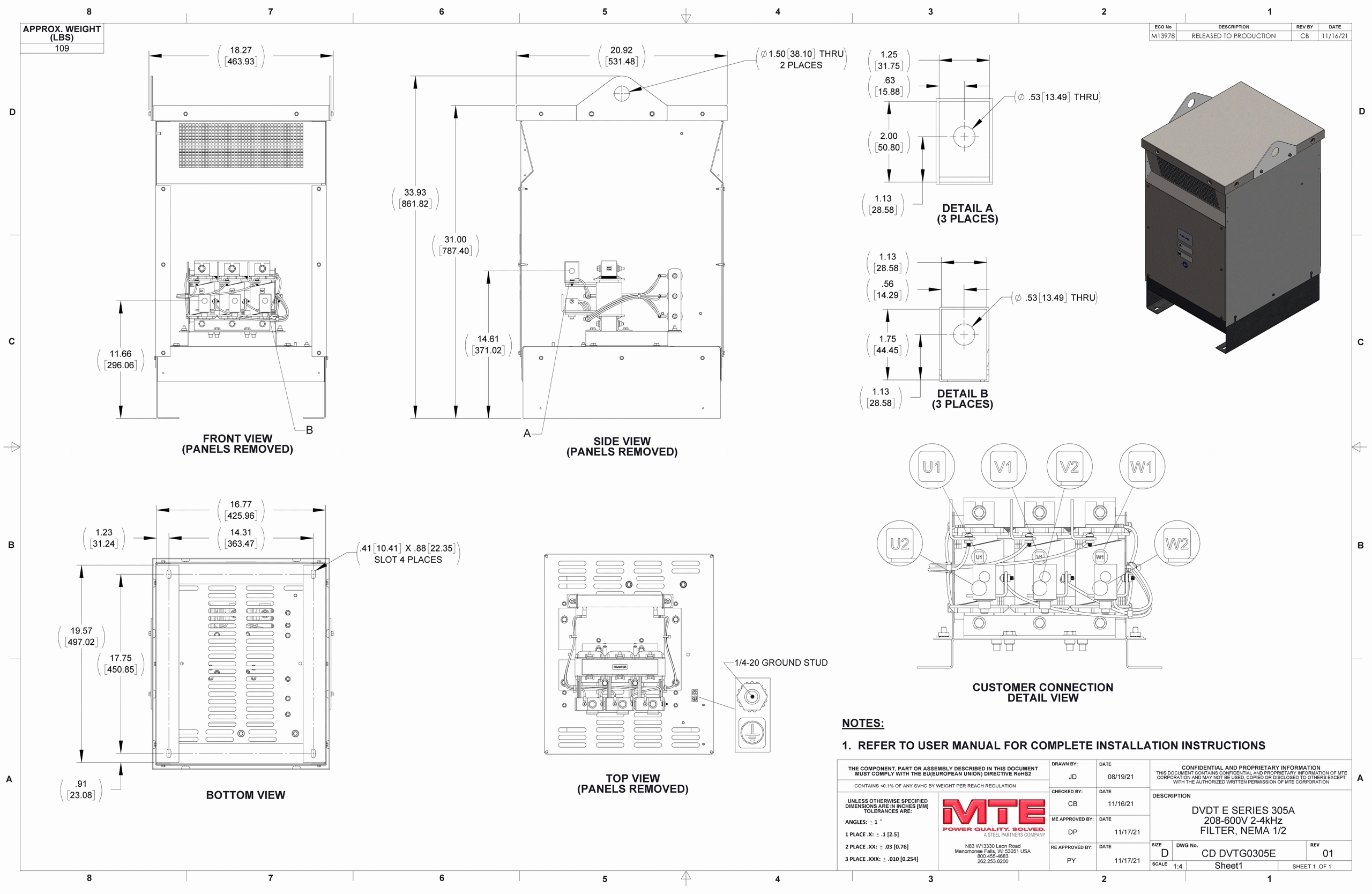 MTE guarantees that peak voltage at the motor terminals will be limited to 150% when the following conditions are met:
