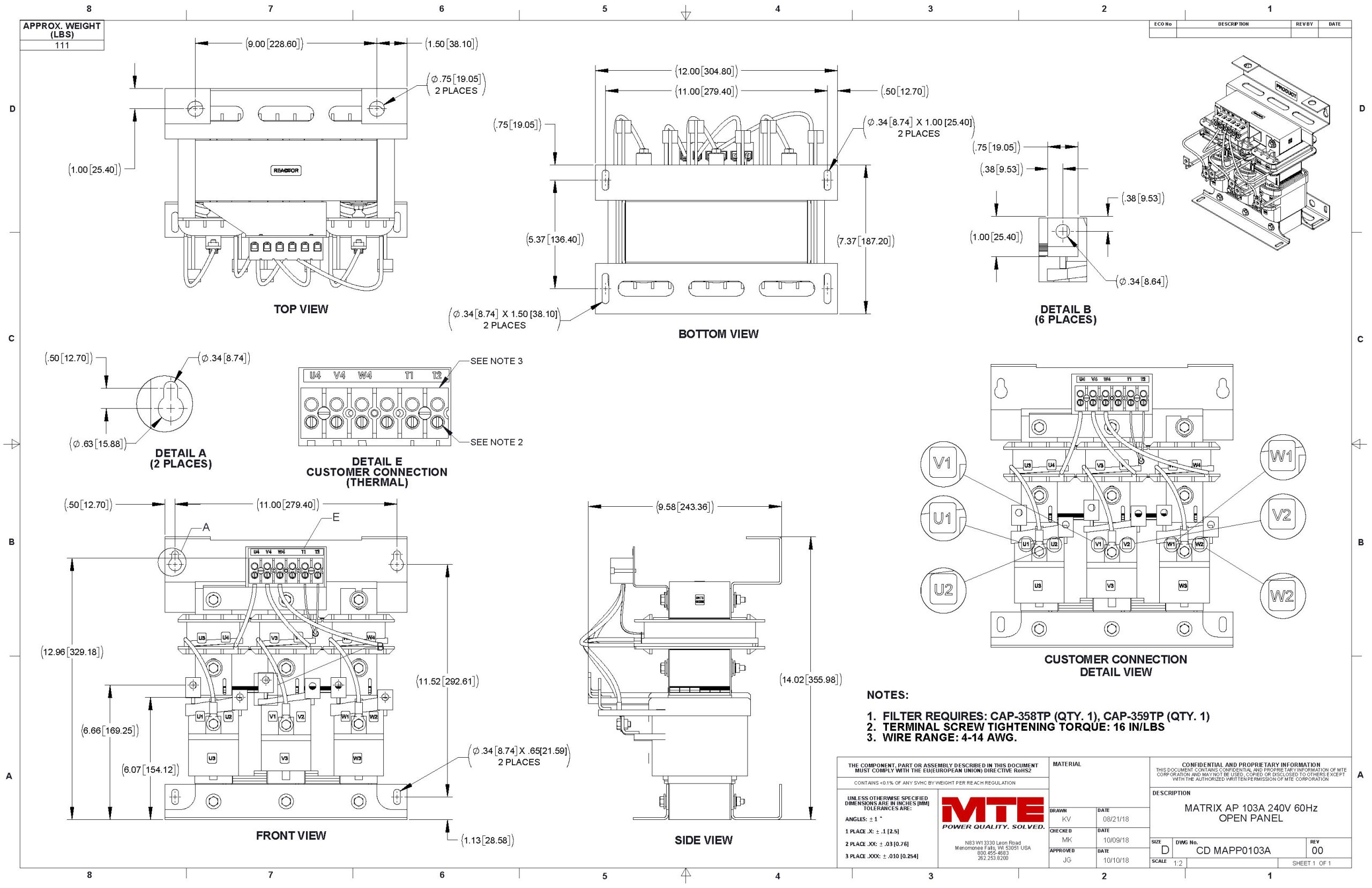 Matrix® AP passive harmonic filters use patented Adaptive Passive Technology to deliver consistently clean, three-phase power across a wide range of operating conditions. Unlike traditional passive filters that only perform at full load, Matrix AP actively adapts to real-world load swings to minimize harmonic distortion (THID), reduce heat generation, and improve overall electrical system efficiency.