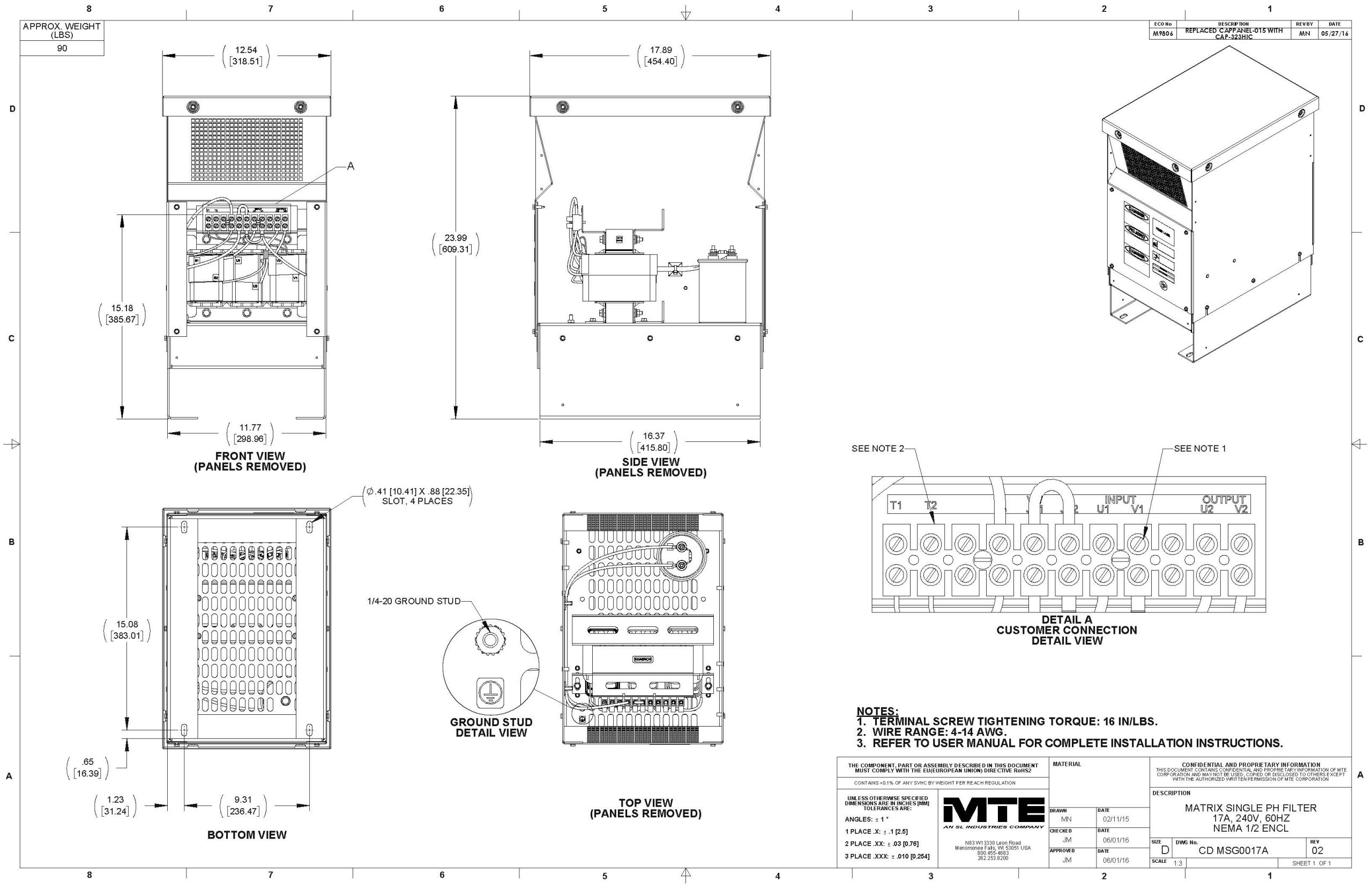 MSG0017A – MTE | Matrix ONE, 240V, 60Hz, 17 Amps, NEMA 1/2