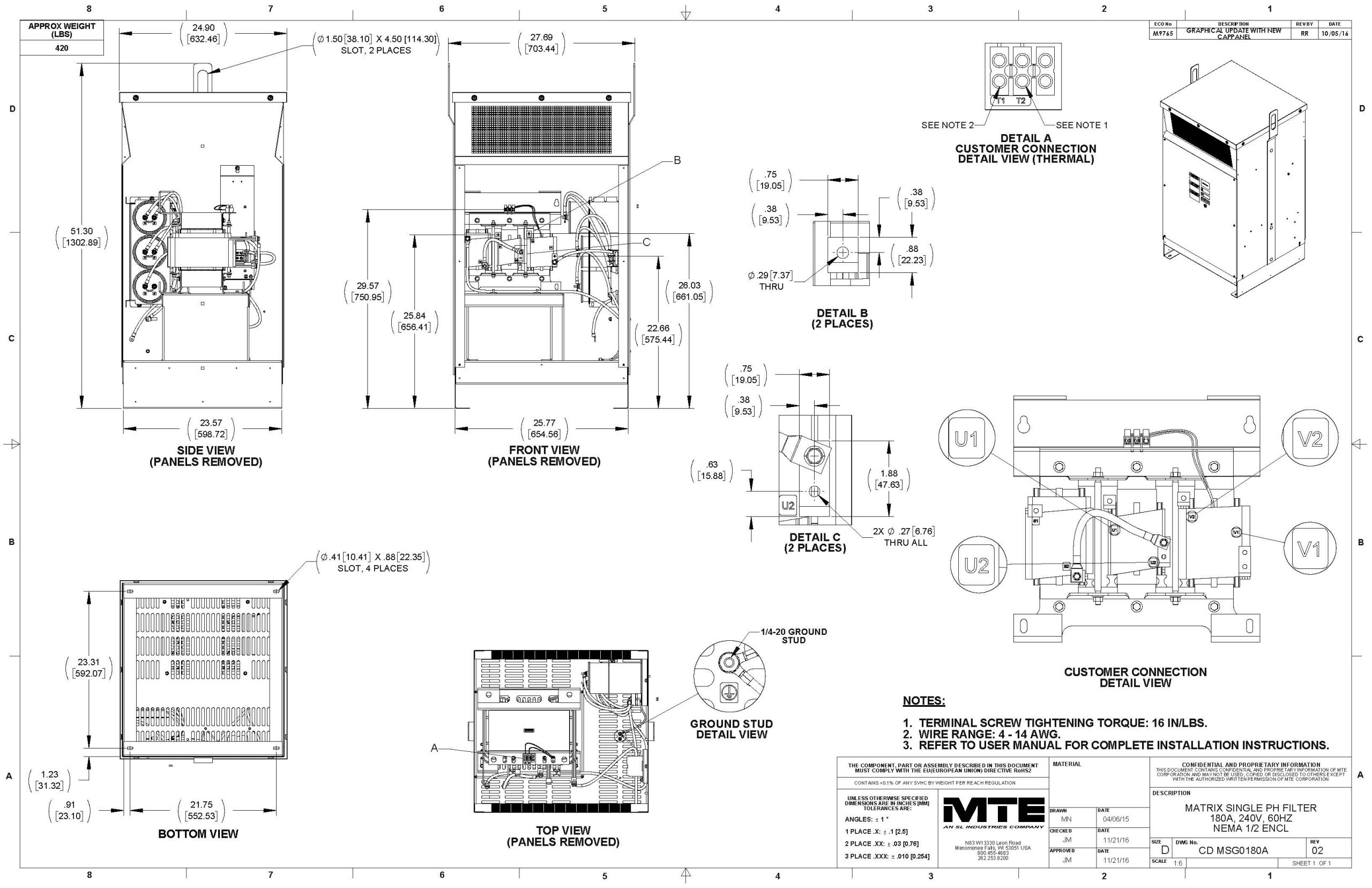 MSG0180A – MTE | Matrix ONE, 240V, 60Hz, 180 Amps, NEMA 1/2