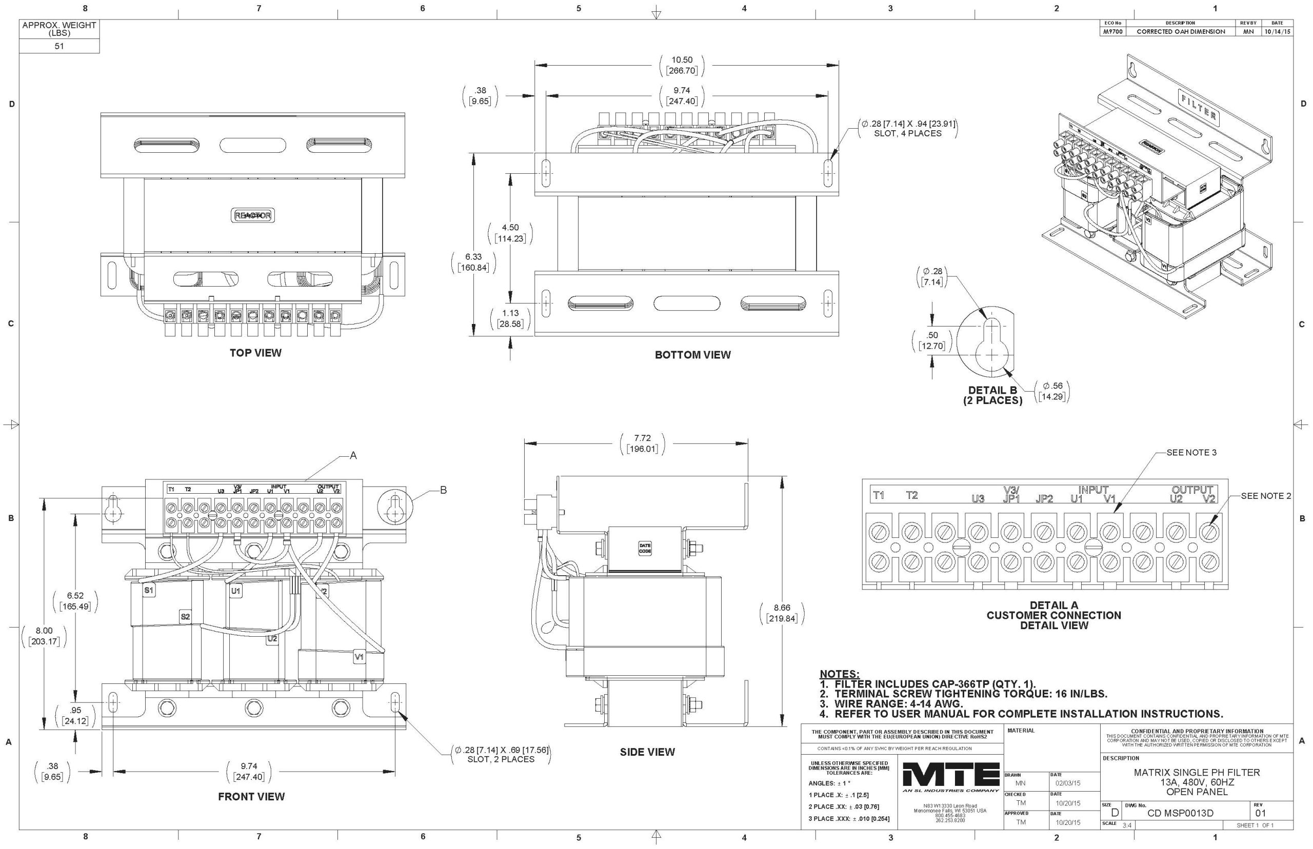 MSP0013D – MTE | Matrix ONE, 480V, 60Hz, 13 Amps, Open