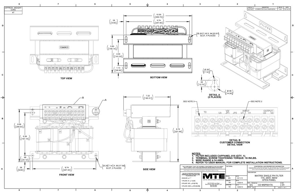 MSP0017A – MTE | Matrix ONE, 240V, 60Hz, 17 Amps, Open