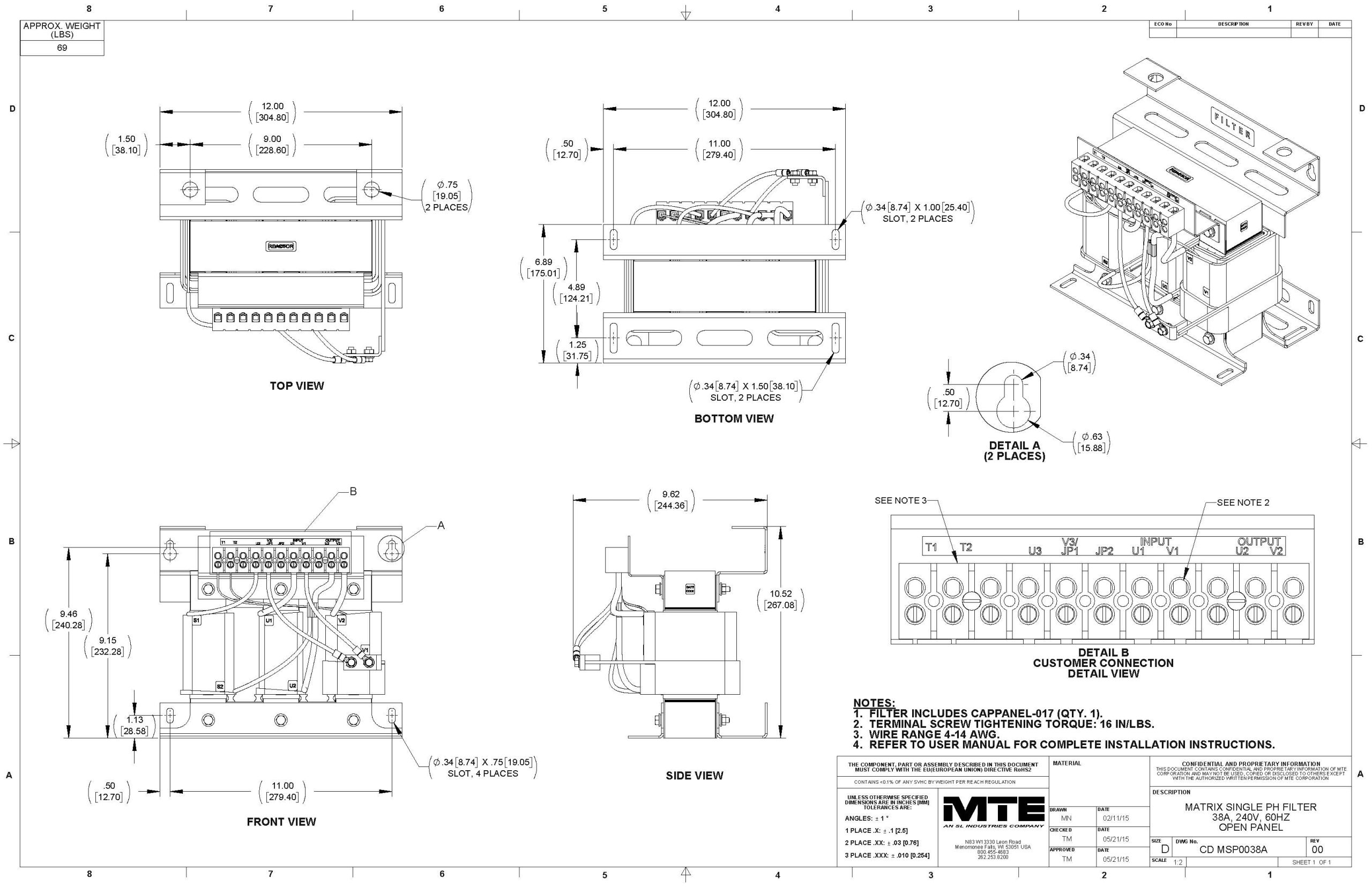 MSP0038A – MTE | Matrix ONE, 240V, 60Hz, 38 Amps, Open