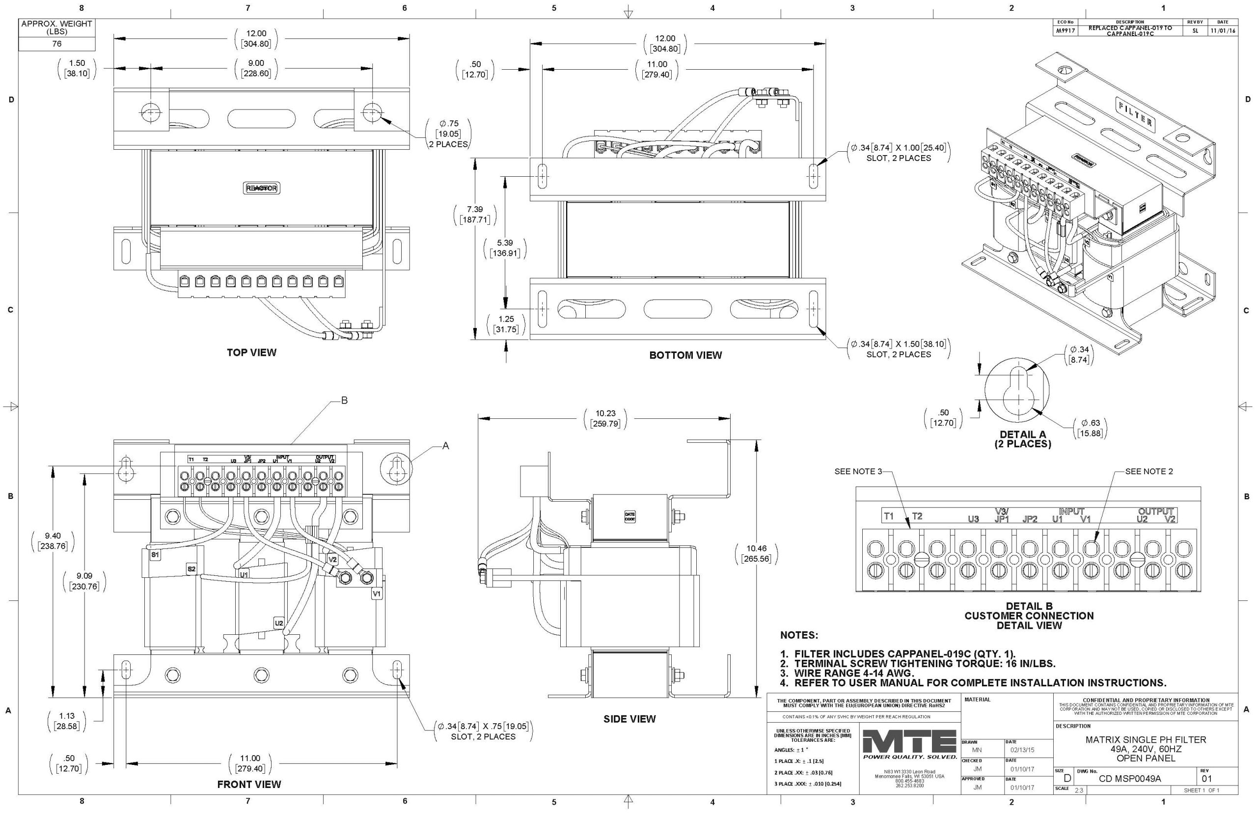 MSP0049A – MTE | Matrix ONE, 240V, 60Hz, 49 Amps, Open