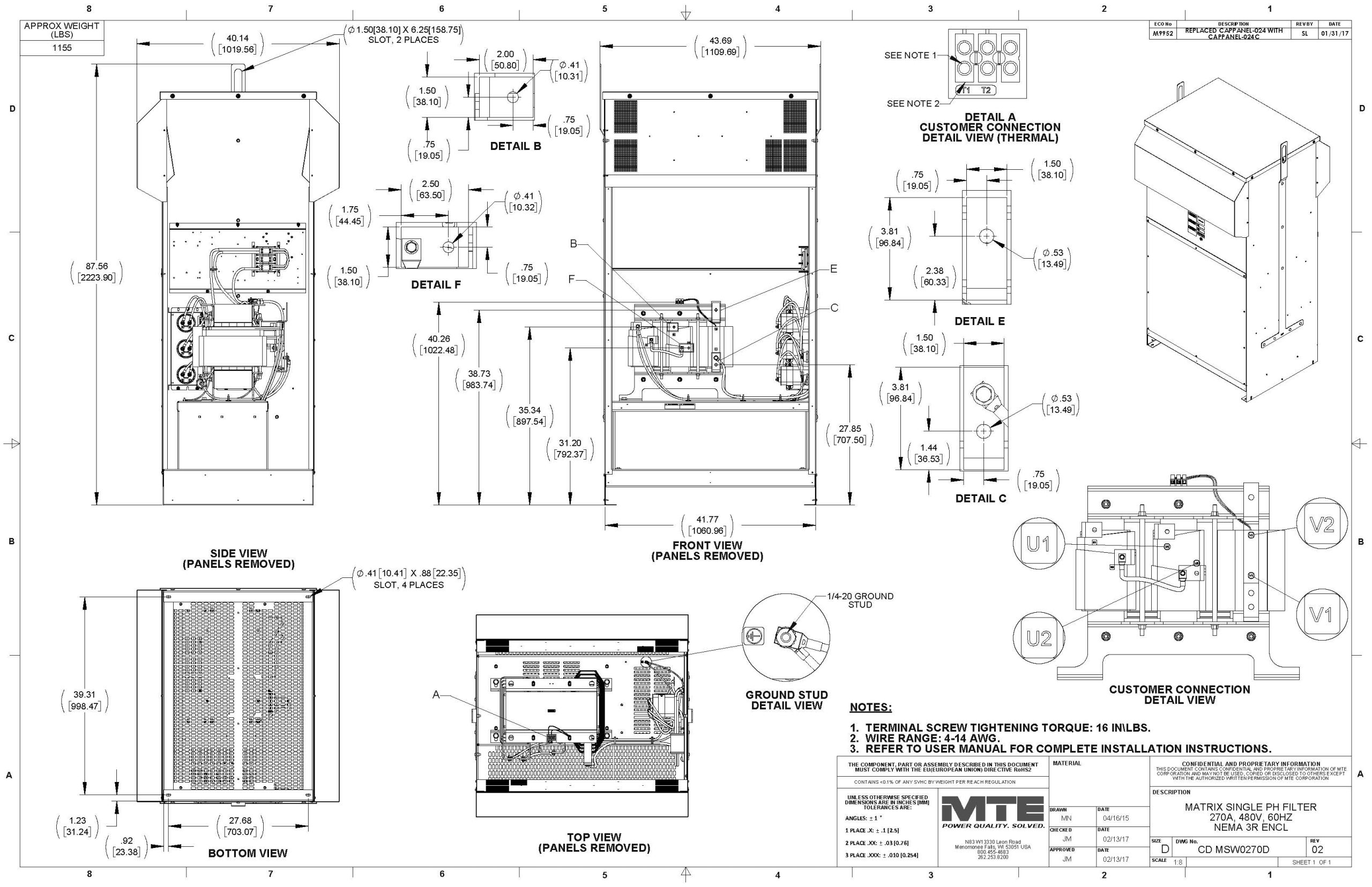 MSW0270D – MTE | Matrix ONE, 480V, 60Hz, 270 Amps, NEMA 3R