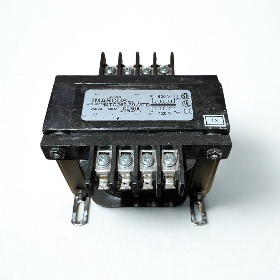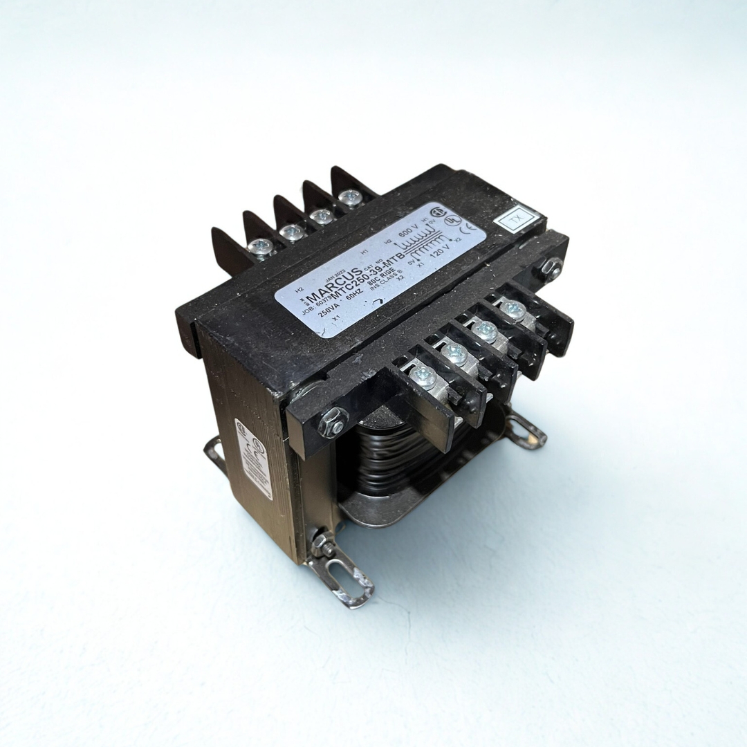 The Marcus Transformers MTC250-39 is a general-purpose, dry-type transformer rated at 250 VA with dual-voltage capability (120 V/600 V AC) at 60 Hz. Although discontinued by the original manufacturer, each unit is backed by Radwell’s 2-year limited warranty, ensuring continued reliability. Designed for low-maintenance operation, this open-frame transformer is ideal for control panels, lighting circuits, and miscellaneous low-voltage applications requiring a compact 250 VA solution. Its robust winding construction and sturdy mounting provisions make it a straightforward replacement or upgrade, even in harsh industrial environments.