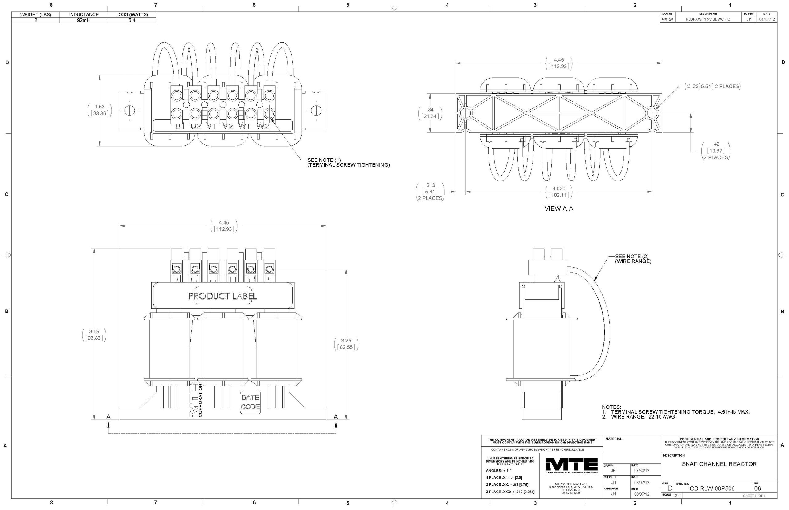 The MTE RLW-00P506 reactor is part of the RLW series, specifically designed to enhance the performance and longevity of electronic equipment by absorbing power line disturbances. This reactor features a high inductance of 92mH and is rated for 0.5A, making it suitable for a wide range of power conversion applications.