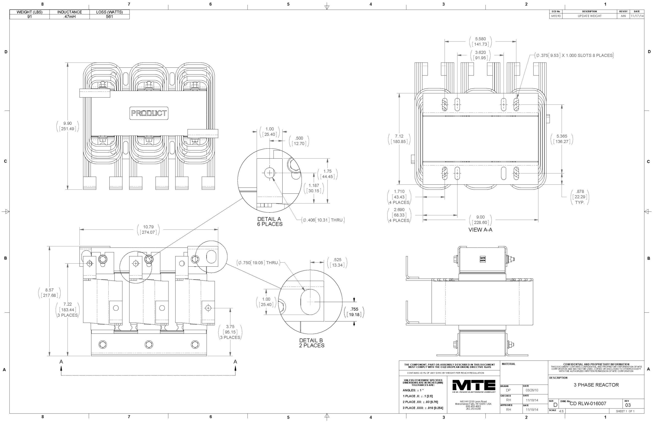 The MTE RLW-016007 reactor is designed to ensure the smooth operation and longevity of electronic equipment by absorbing power line disturbances. Part of the RLW series, this reactor offers state-of-the-art filtering capabilities for various industrial applications. With a current rating of 160A and an inductance of 0.47mH, it provides robust protection while maintaining a compact and lightweight design.