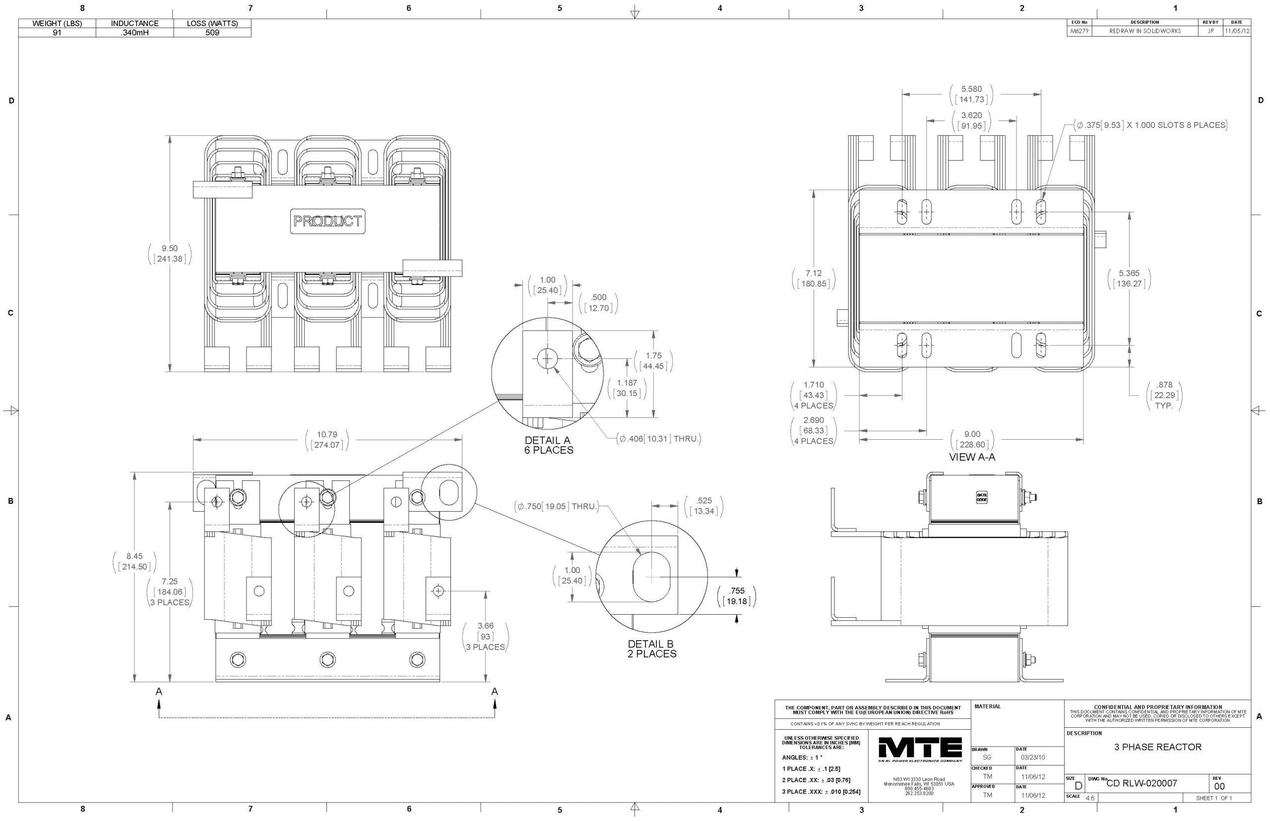 The MTE RLW-020007 reactor is engineered to ensure the smooth operation and longevity of electronic equipment by effectively absorbing power line disturbances. As part of the RLW series, this reactor offers cutting-edge filtering capabilities for various industrial applications. With a high current rating of 200A and an inductance of 0.34mH, it provides robust protection while maintaining a compact and lightweight design.