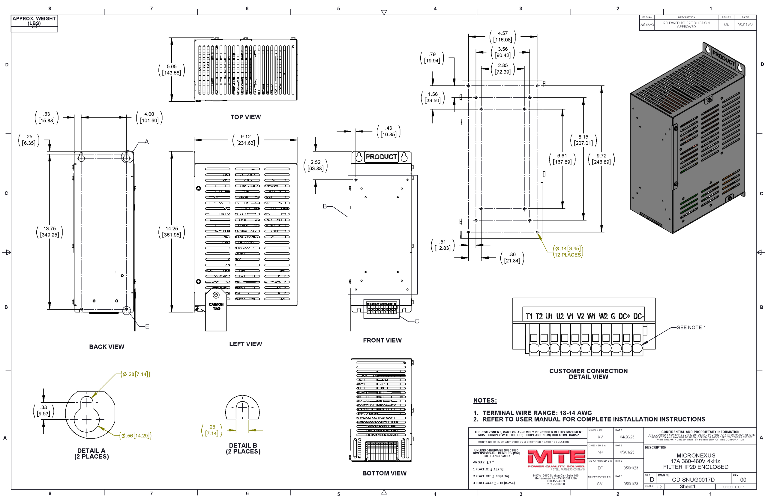 SNUG0017D – MTE | microNexus, 380-480VAC, 60Hz, 17Amps, I