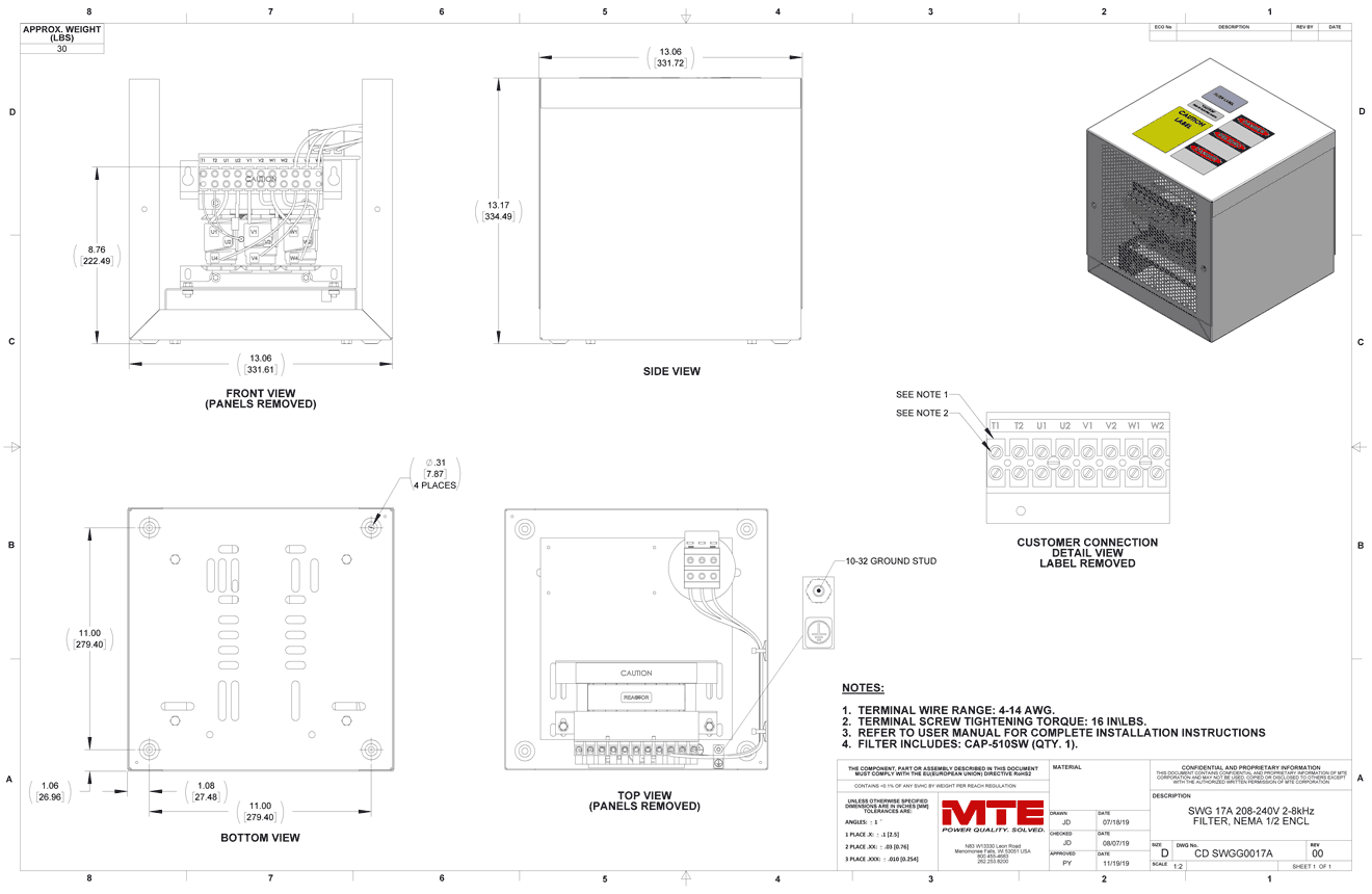 SWGG0017A – MTE | SineWave Guardian, 208-240vac, 0-60Hz, 17A