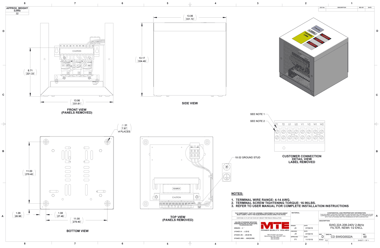 SWGG0022A – MTE | SineWave Guardian, 208-240vac, 0-60Hz, 22A