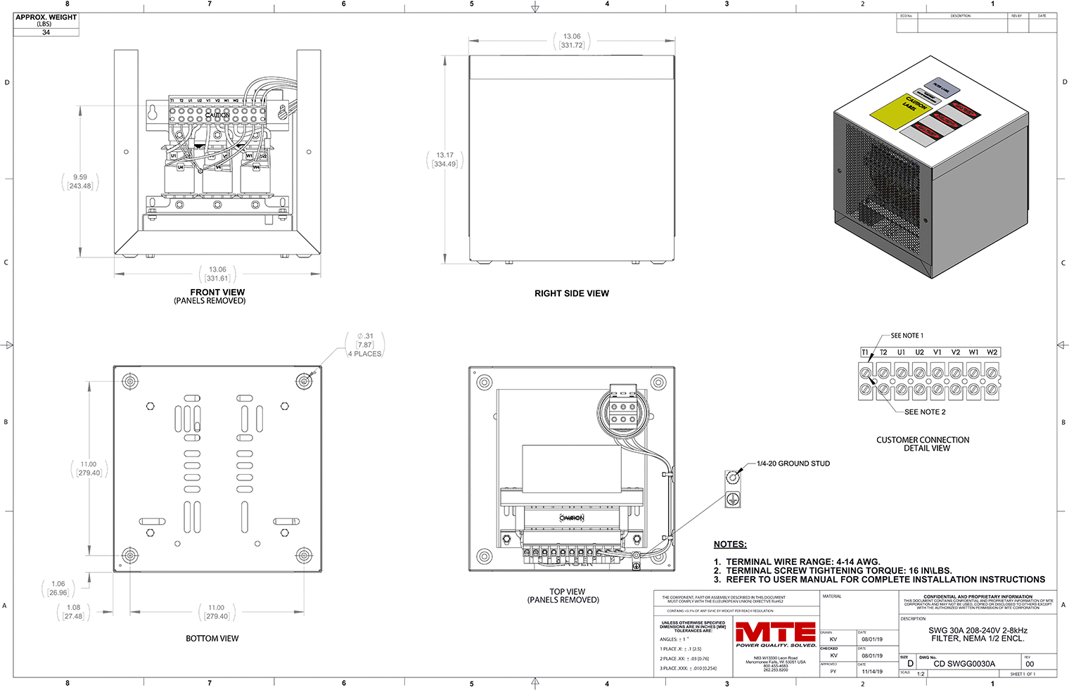 SWGG0030A – MTE | SineWave Guardian, 208-240vac, 0-60Hz, 30A