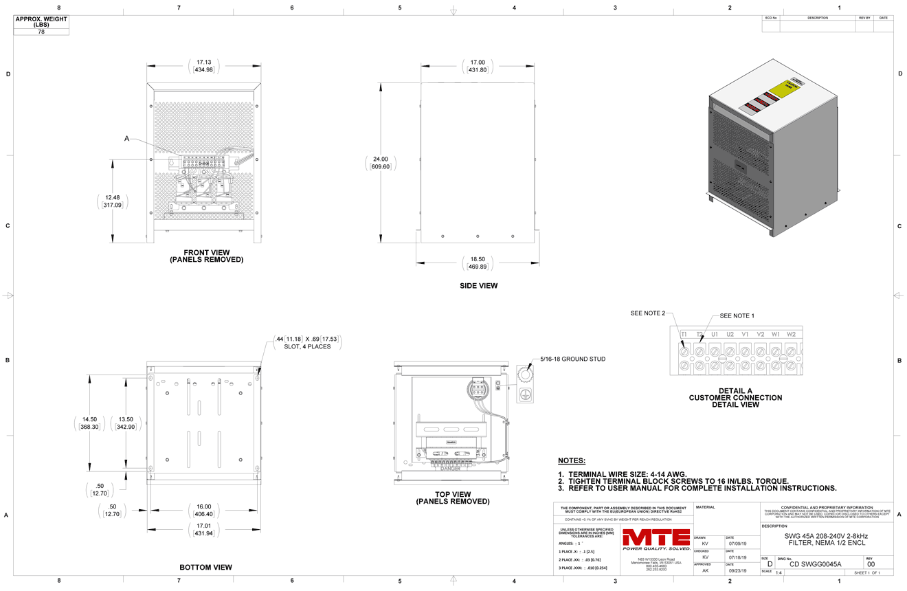 SWGG0045A – MTE | SineWave Guardian,208-240vac,0-60Hz,45A