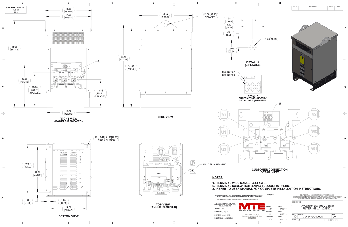 SWGG0250A – MTE | SineWave Guardian, 208-240vac, 0-60Hz, 250