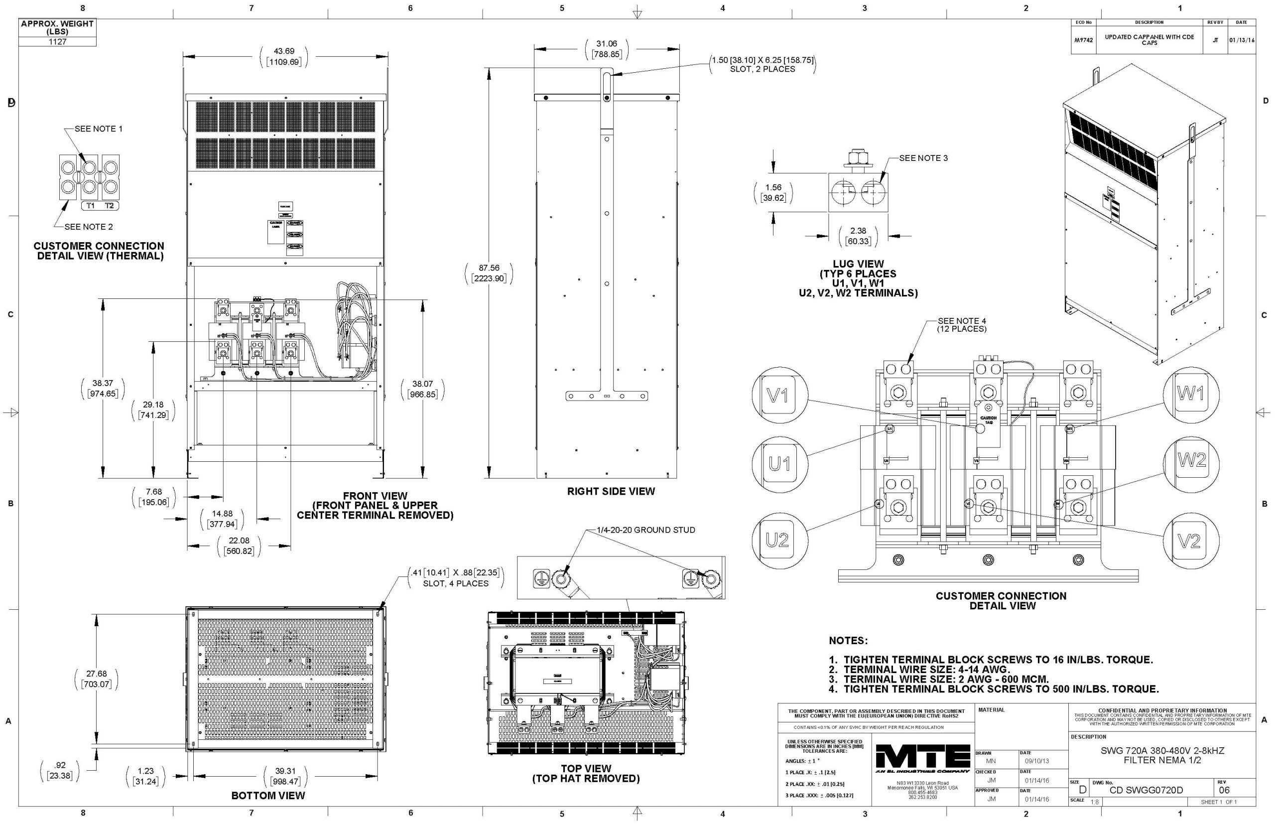 For ultimate motor protection and power quality, there is nothing better than the MTE SineWave Guardian® Filter. Designed to provide best-in-class protection for motors at distances up to 15,000 feet, this filter excels even in the hottest, harshest, and most remote locations on earth. By expertly cleaning the PWM waveforms generated by Variable Frequency Drives (VFDs) and rejecting the carrier frequency, the SineWave Guardian virtually eliminates high-frequency content and voltage peaks. This results in significantly reduced motor heating, extended equipment life, and minimized downtime. With its modular design and high efficiency, it is the premier choice for demanding applications from steel mills to oil fields.