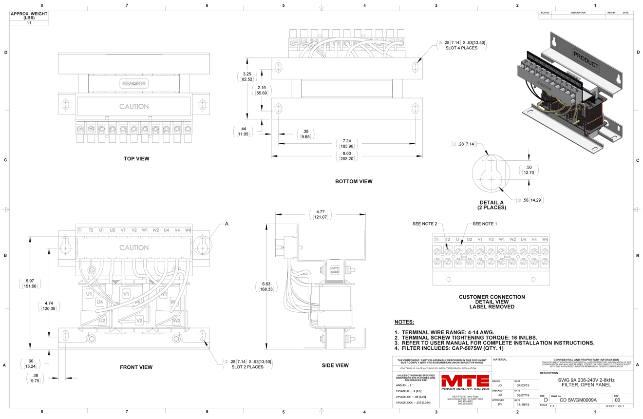 For ultimate motor protection and power quality, there is nothing better than the MTE SineWave Guardian® Filter. Designed to provide best-in-class protection for motors at distances up to 15,000 feet, this filter excels even in the hottest, harshest, and most remote locations on earth. By expertly cleaning the PWM waveforms generated by Variable Frequency Drives (VFDs) and rejecting the carrier frequency, the SineWave Guardian virtually eliminates high-frequency content and voltage peaks. This results in significantly reduced motor heating, extended equipment life, and minimized downtime. With its modular design and high efficiency, it is the premier choice for demanding applications from steel mills to oil fields.