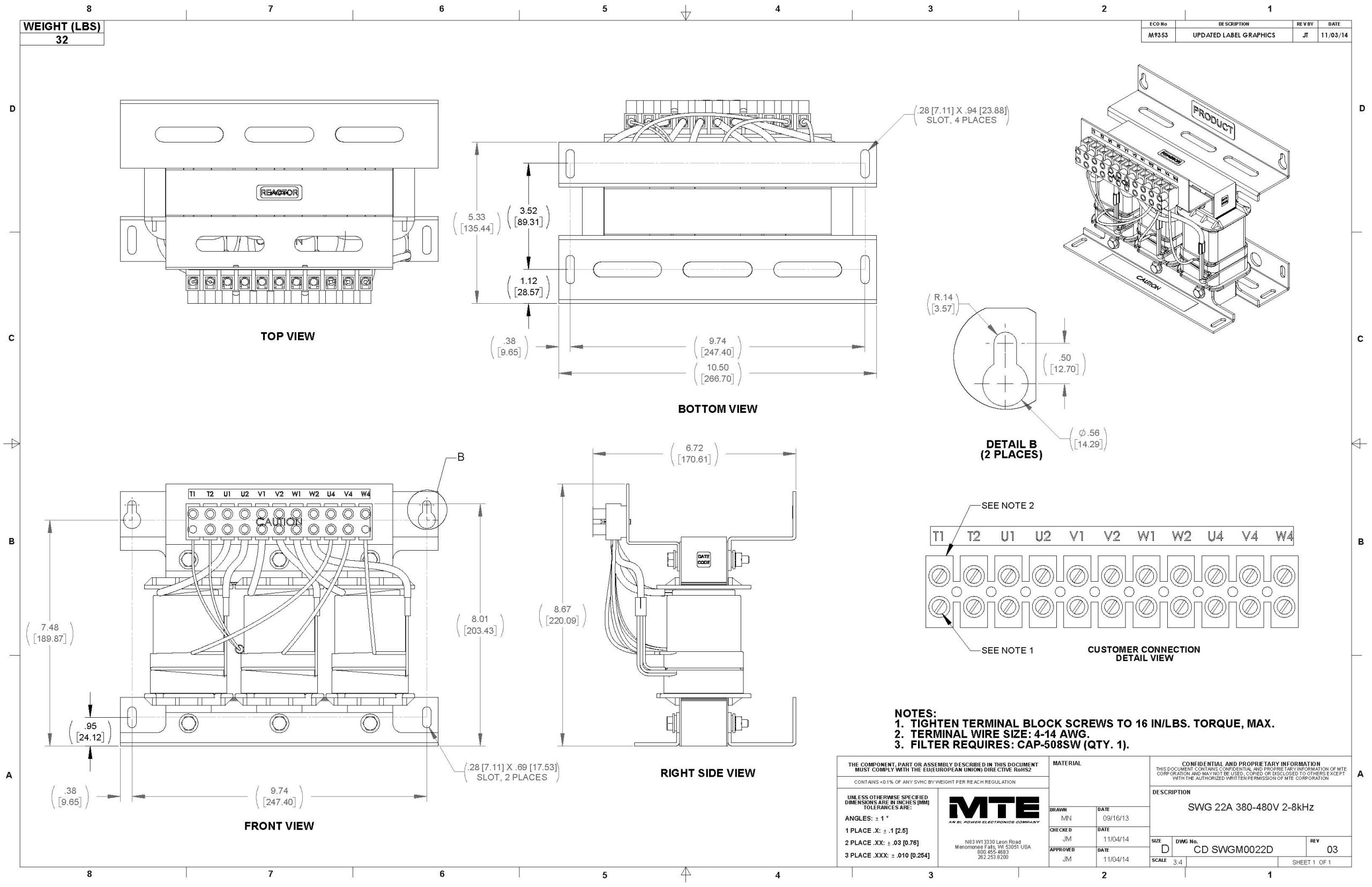 - Reduces motor heating and eliminates voltage peaks for extended motor life