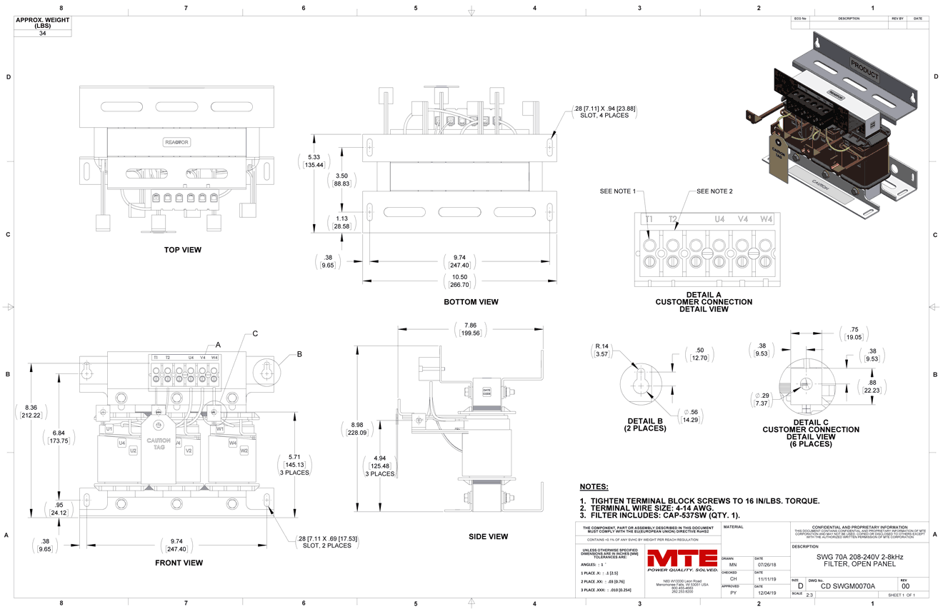 SWGM0070A – MTE | SineWave Guardian, 208-240vac, 0-60Hz, 70A
