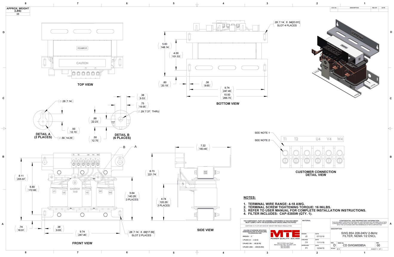 SWGM0085A – MTE | SineWave Guardian, 208-240vac, 0-60Hz, 85A