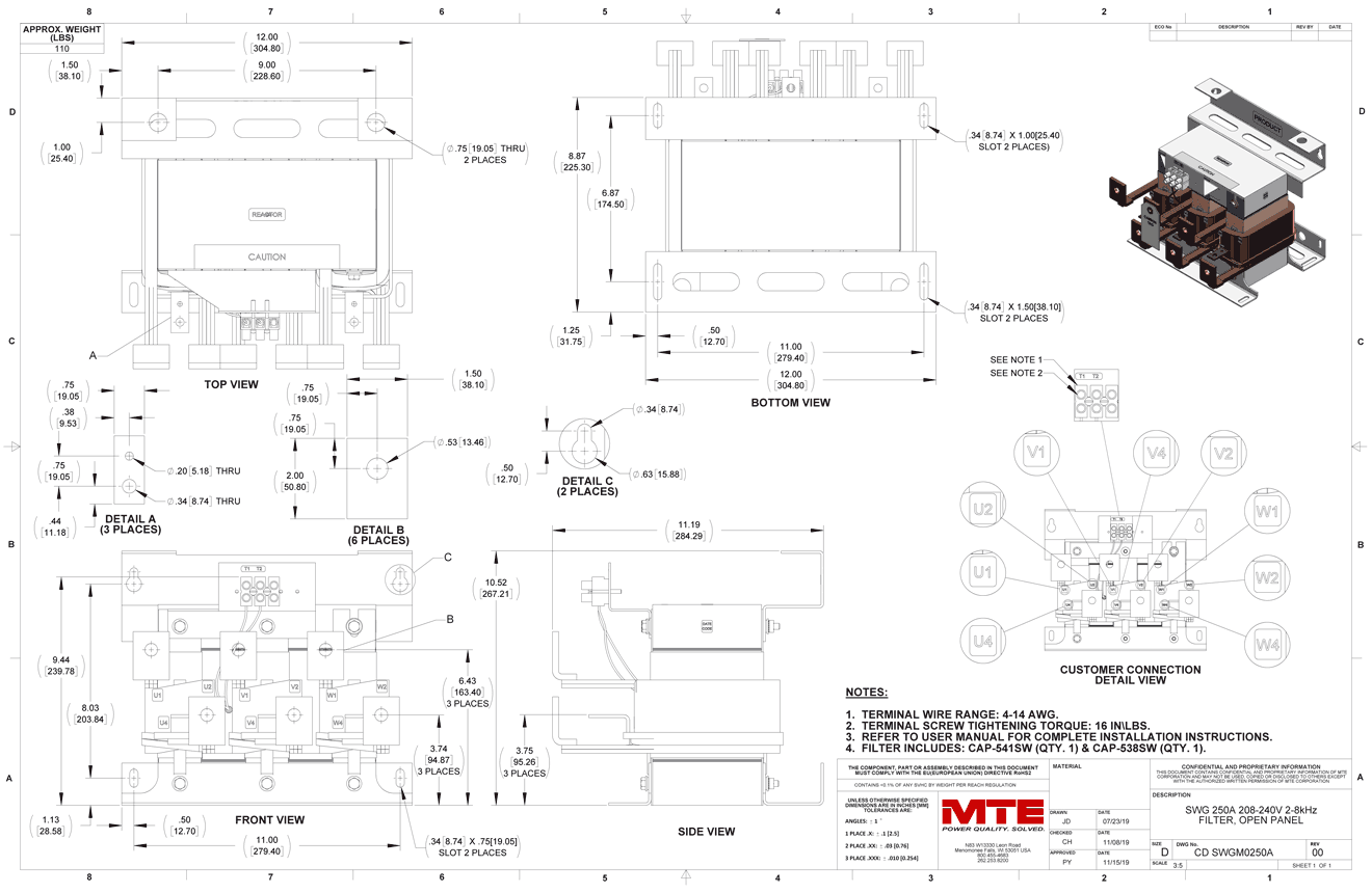 SWGM0250A – MTE | SineWave Guardian,208-240vac,0-60Hz,250