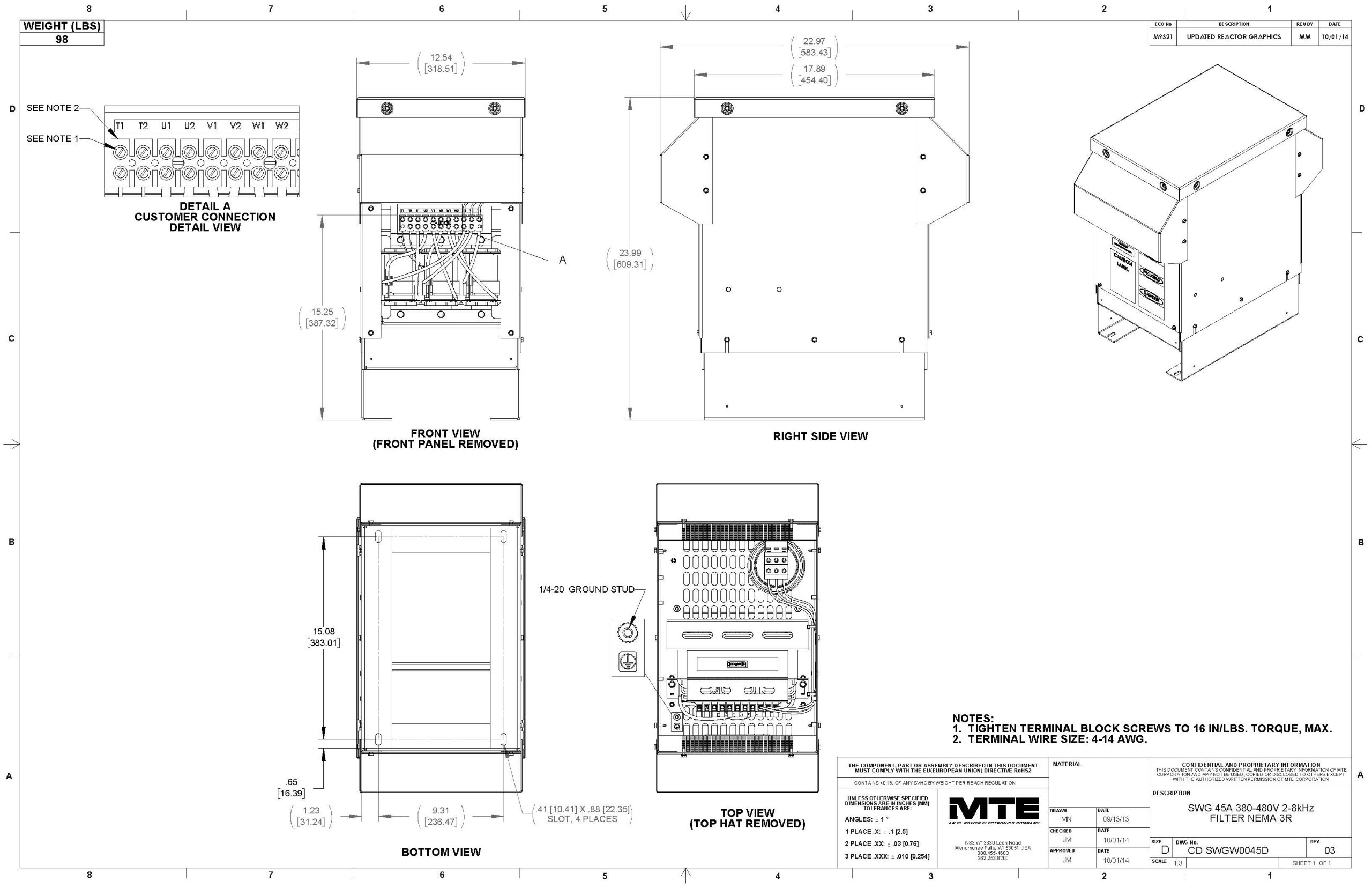 SWGW0045D – MTE | SineWave Guardian, 380-480vac, 0-60Hz, 45Amps, NEMA3R