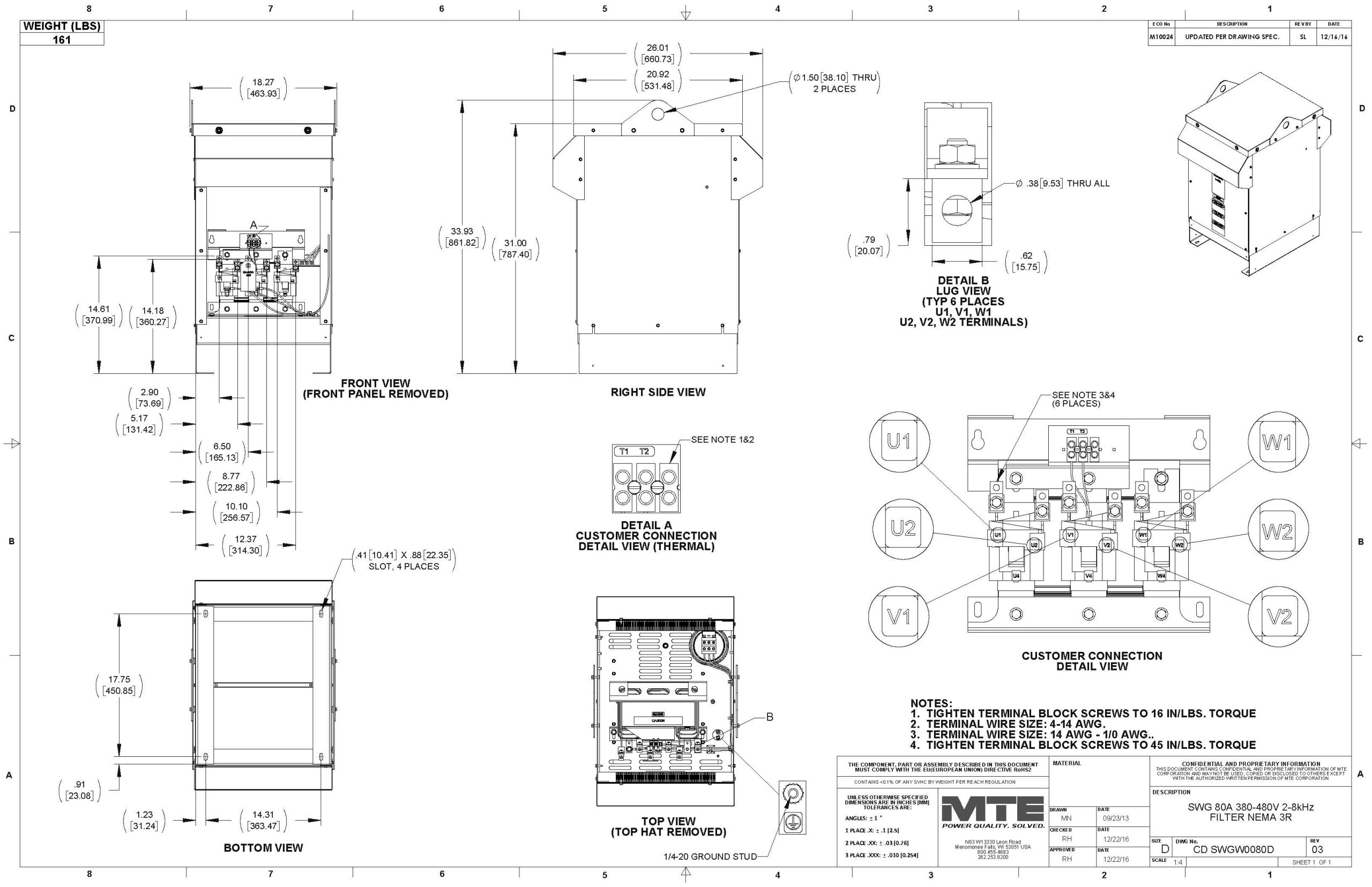 - Reduces motor heating and eliminates voltage peaks for extended motor life
