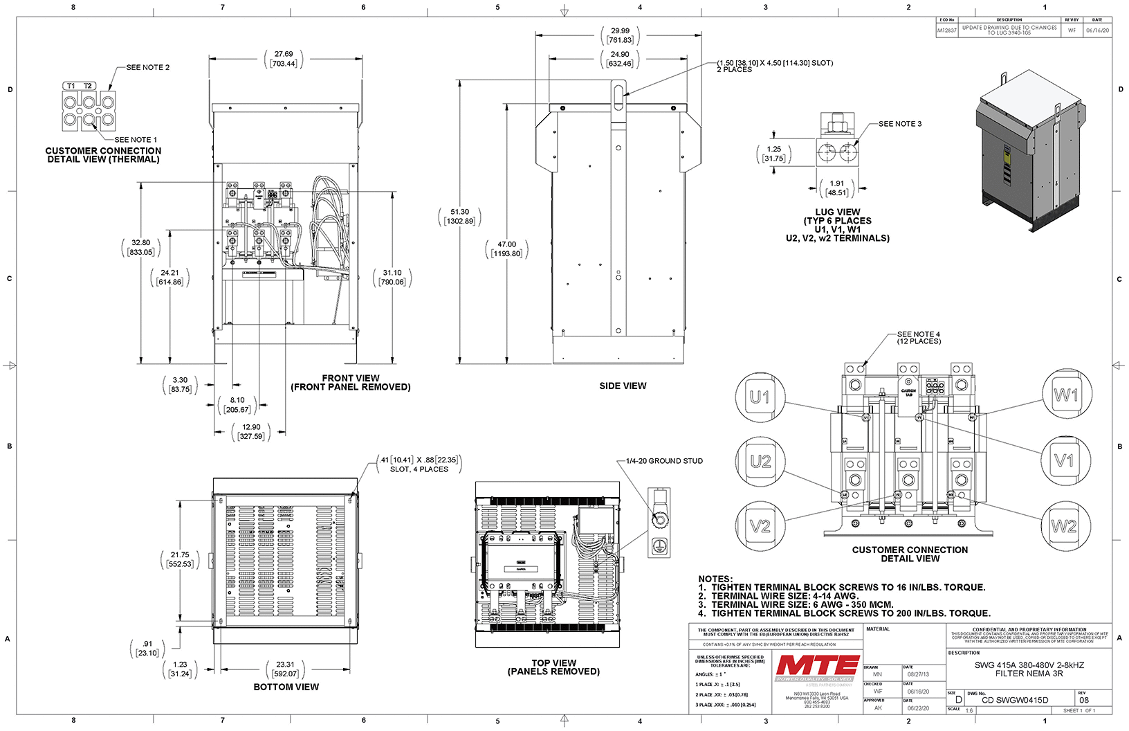 For ultimate motor protection and power quality, there is nothing better than the MTE SineWave Guardian® Filter. Designed to provide best-in-class protection for motors at distances up to 15,000 feet, this filter excels even in the hottest, harshest, and most remote locations on earth. By expertly cleaning the PWM waveforms generated by Variable Frequency Drives (VFDs) and rejecting the carrier frequency, the SineWave Guardian virtually eliminates high-frequency content and voltage peaks. This results in significantly reduced motor heating, extended equipment life, and minimized downtime. With its modular design and high efficiency, it is the premier choice for demanding applications from steel mills to oil fields.