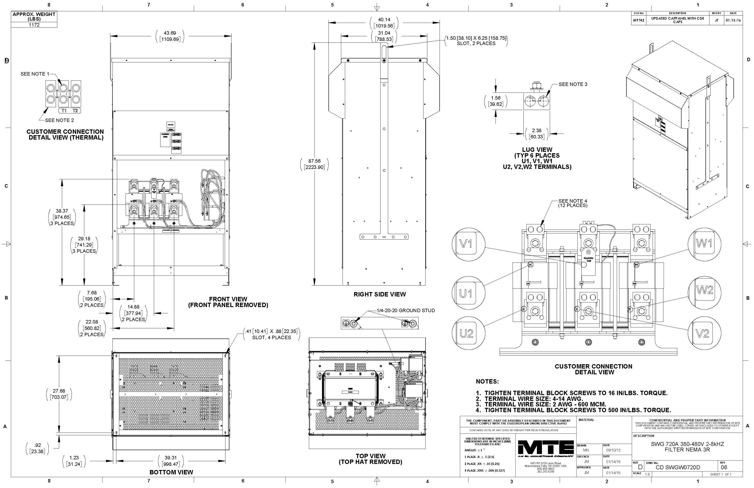 For ultimate motor protection and power quality, there is nothing better than the MTE SineWave Guardian® Filter. Designed to provide best-in-class protection for motors at distances up to 15,000 feet, this filter excels even in the hottest, harshest, and most remote locations on earth. By expertly cleaning the PWM waveforms generated by Variable Frequency Drives (VFDs) and rejecting the carrier frequency, the SineWave Guardian virtually eliminates high-frequency content and voltage peaks. This results in significantly reduced motor heating, extended equipment life, and minimized downtime. With its modular design and high efficiency, it is the premier choice for demanding applications from steel mills to oil fields.