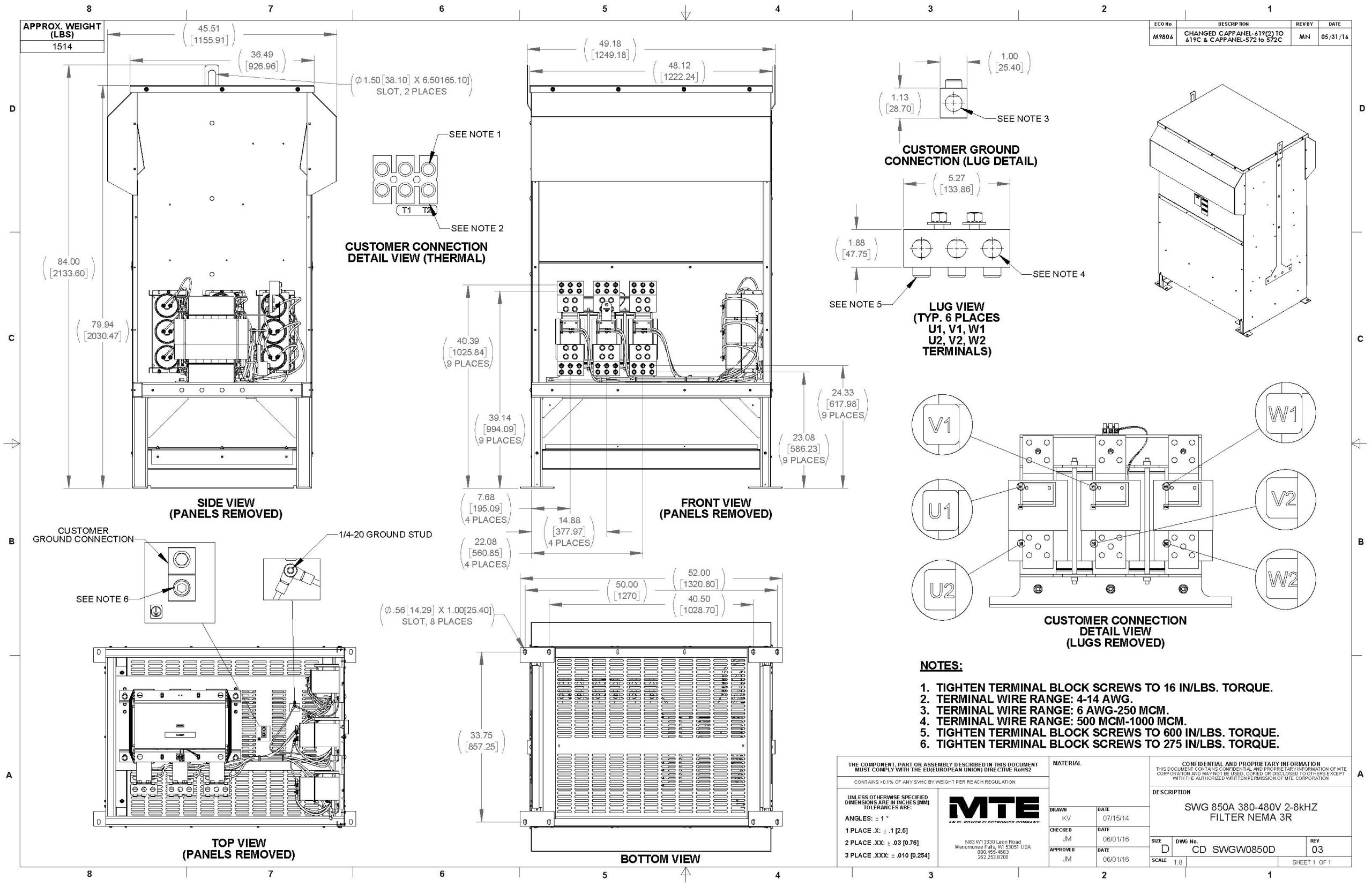 For ultimate motor protection and power quality, there is nothing better than the MTE SineWave Guardian® Filter. Designed to provide best-in-class protection for motors at distances up to 15,000 feet, this filter excels even in the hottest, harshest, and most remote locations on earth. By expertly cleaning the PWM waveforms generated by Variable Frequency Drives (VFDs) and rejecting the carrier frequency, the SineWave Guardian virtually eliminates high-frequency content and voltage peaks. This results in significantly reduced motor heating, extended equipment life, and minimized downtime. With its modular design and high efficiency, it is the premier choice for demanding applications from steel mills to oil fields.