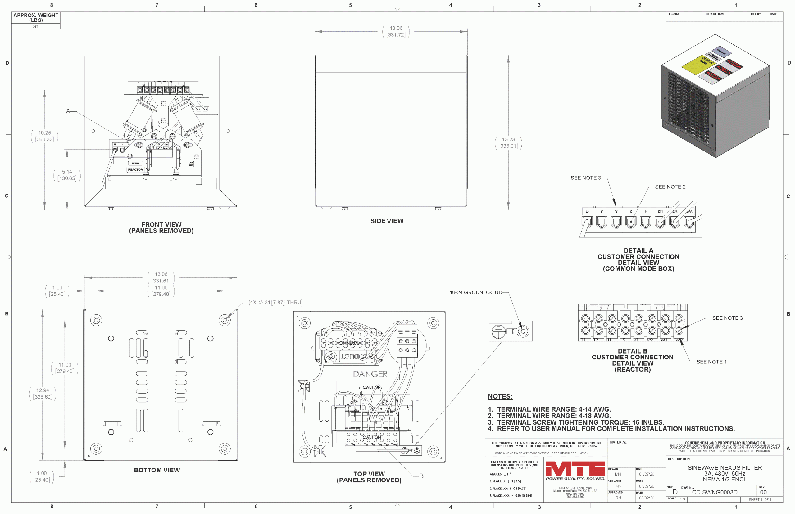 SWNG0003D – MTE | SineWave Nexus, 380-480VAC, 60Hz, 3Amps