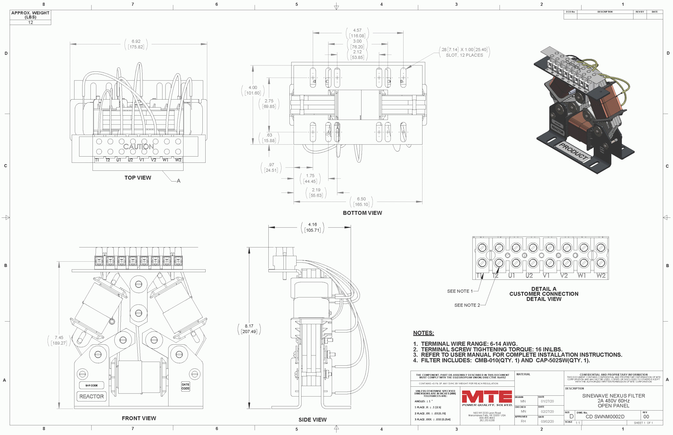 SWNM0002D – MTE | SineWave Nexus, 380-480VAC, 60Hz, 2Amps