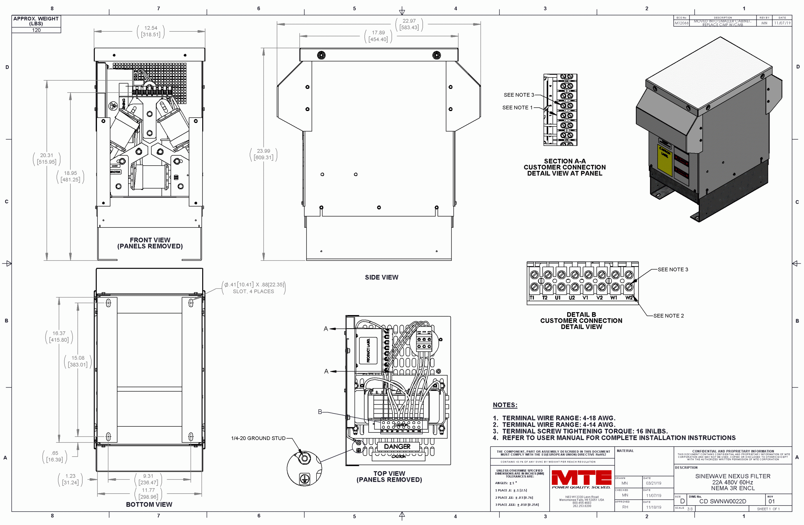 SWNW0022D – MTE | SineWave Nexus, 380-480VAC, 60Hz, 22Amp