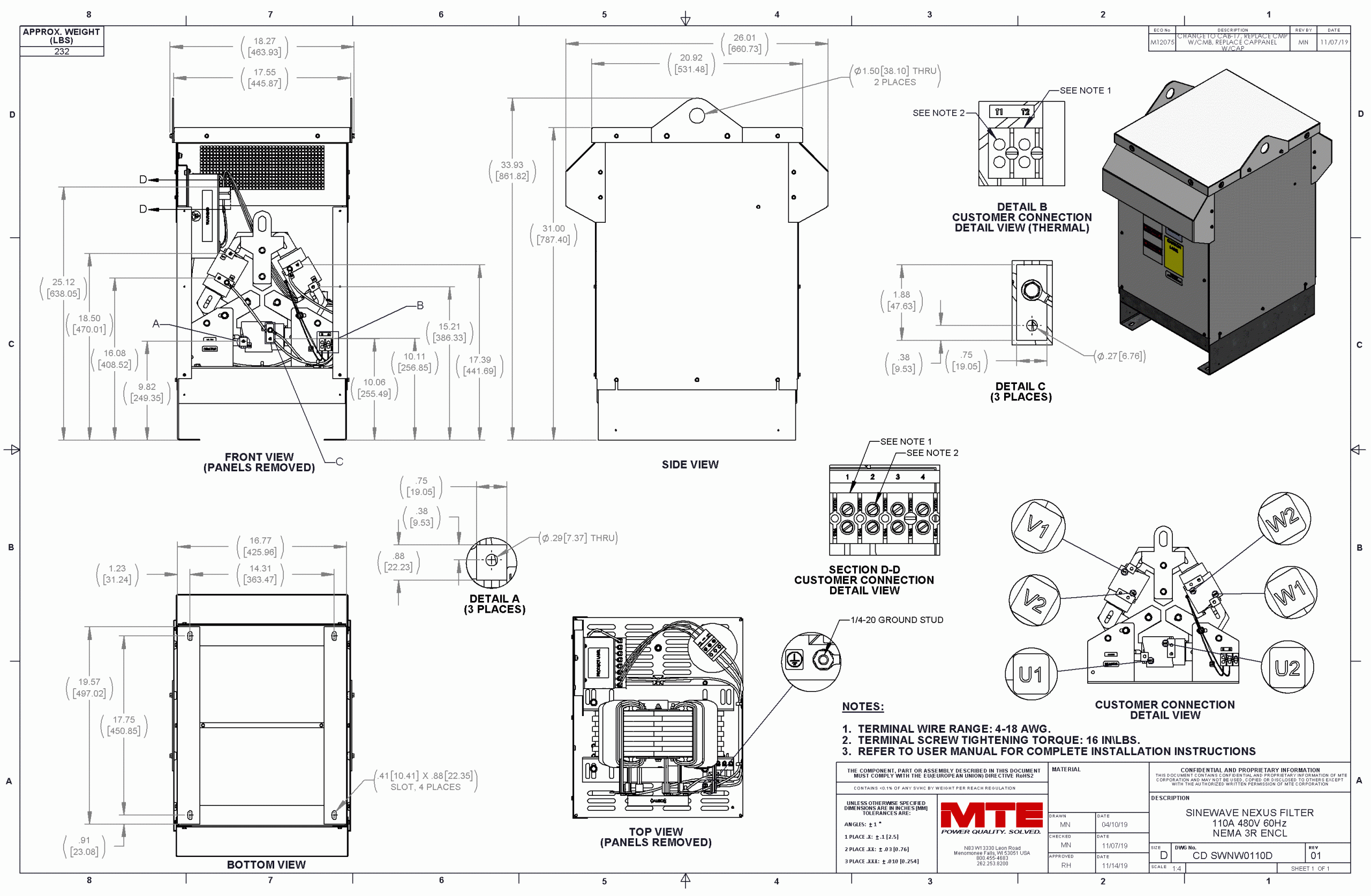 SWNW0110D – MTE | SineWave Nexus, 380-480VAC, 60Hz, 110Am