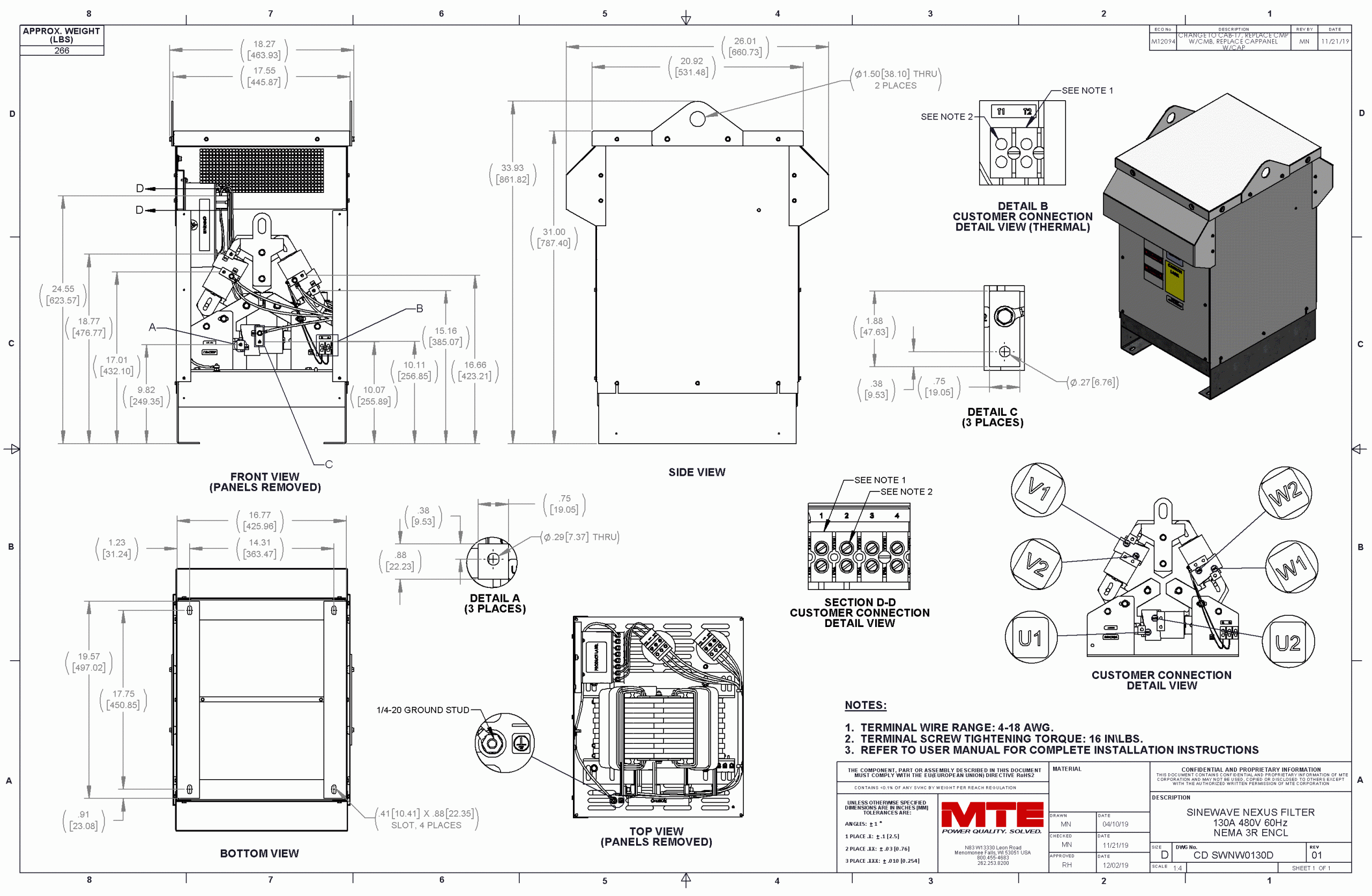 SWNW0130D – MTE | SineWave Nexus, 380-480VAC, 60Hz, 130Am