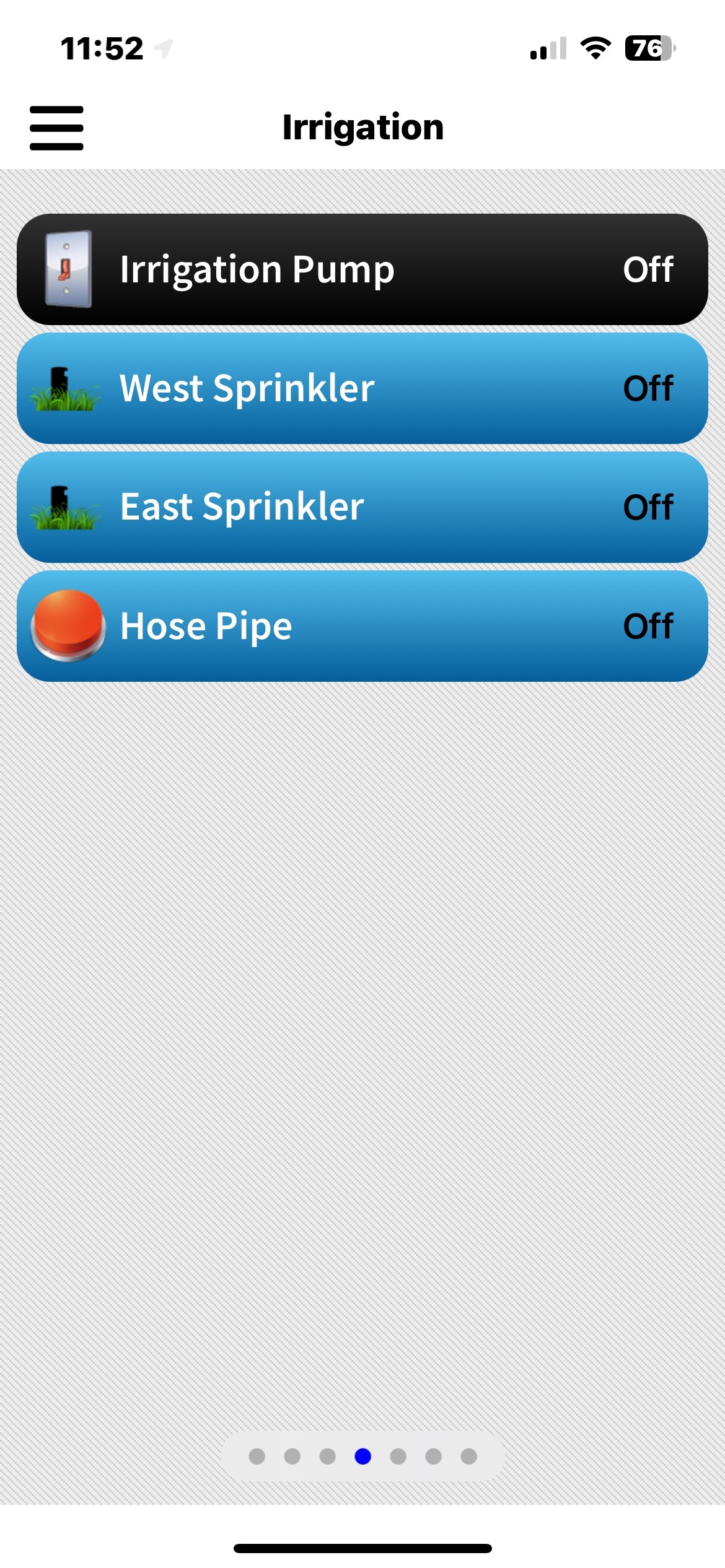 The system automates water distribution through four key components: west and east zone sprinklers, a hose pipe for spot watering, and an irrigation pump. The X-410’s four SPST relays activate these components based on schedules or conditional rules programmed via the no-code Task Builder. For example, sprinklers skip cycles during rainfall (detected via weather-triggered email alerts), and the irrigation pump shuts off if pressure drops indicate a dry well. A physical light switch toggle, wired to one of the X-410’s digital inputs, allows manual override for emergency shutdowns or ad-hoc watering.