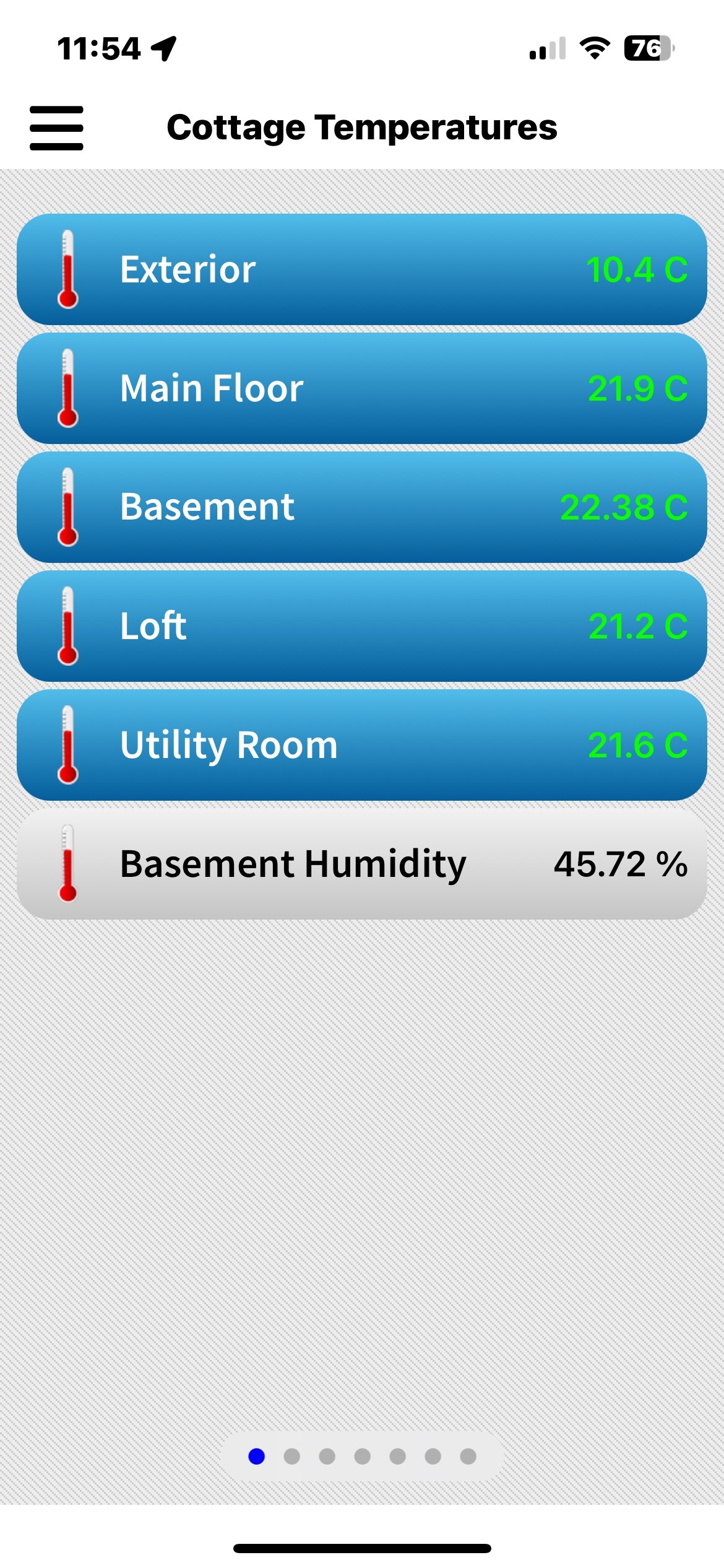 The X-410 monitors six distinct temperature zones across the cottage: exterior ambient conditions, loft storage areas, main living spaces, utility rooms, basement plumbing corridors, and basement humidity levels. Sixteen temperature sensors feed real-time data into the controller, with basement humidity tracking added to preempt mold risks. AJ leverages the X-410’s data logging to analyze trends, such as seasonal temperature fluctuations or moisture accumulation, ensuring proactive maintenance.